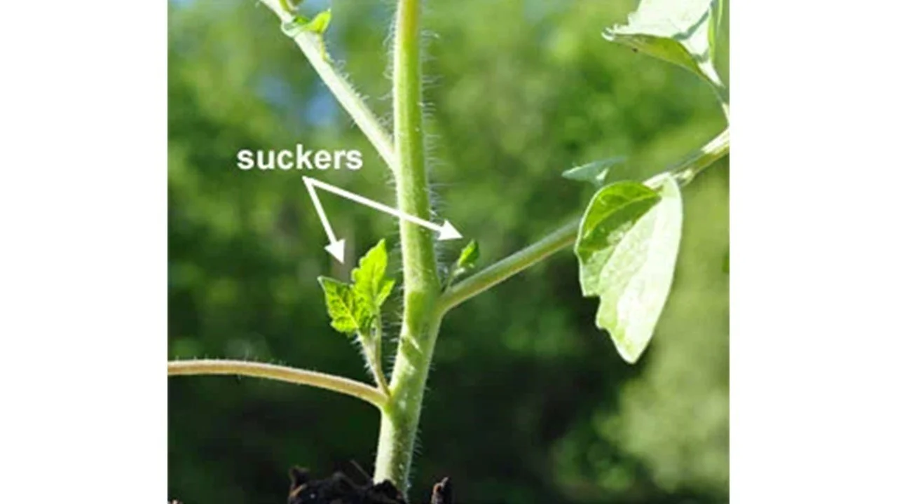 When Plant is 3 feet tall, remove lower (oldest) leaves, remove suckers that grow at the joints where two branches join.